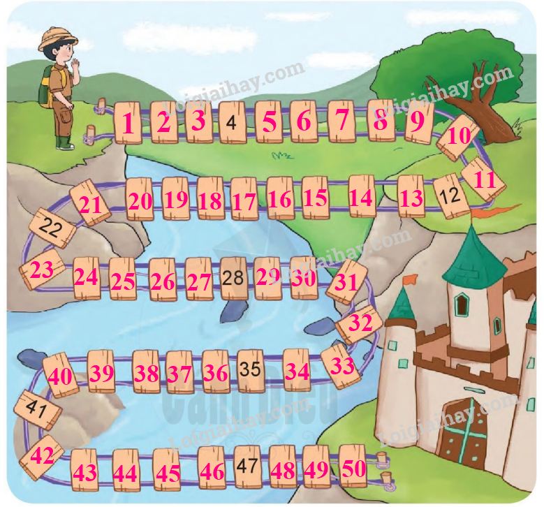 a) Các số trên các nhịp cầu viết theo thứ tự từ 1 đến 50.
