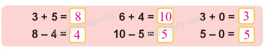 Dựa vào kiến thức về phép cộng, phép trừ trong phạm vi 10, thực hiện các phép tính đề bài đã cho.