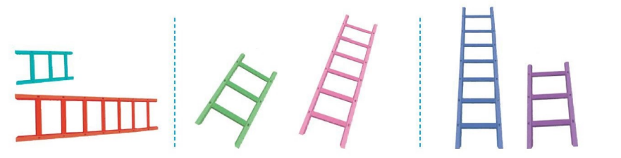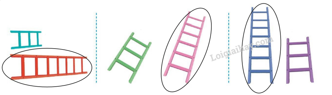 b) Khoanh vào chiếc thang dài hơn trong mỗi hình sau: