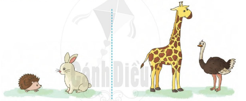 Quan sát tranh, xác định các đường vạch ngang ở phía chân và phía đầu các con vật, từ đó so sánh rồi chỉ ra con vật nào cao hơn.
