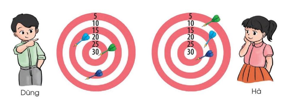 b) Tính số điểm của bạn Dũng và bạn Hà trong trò chơi sau: