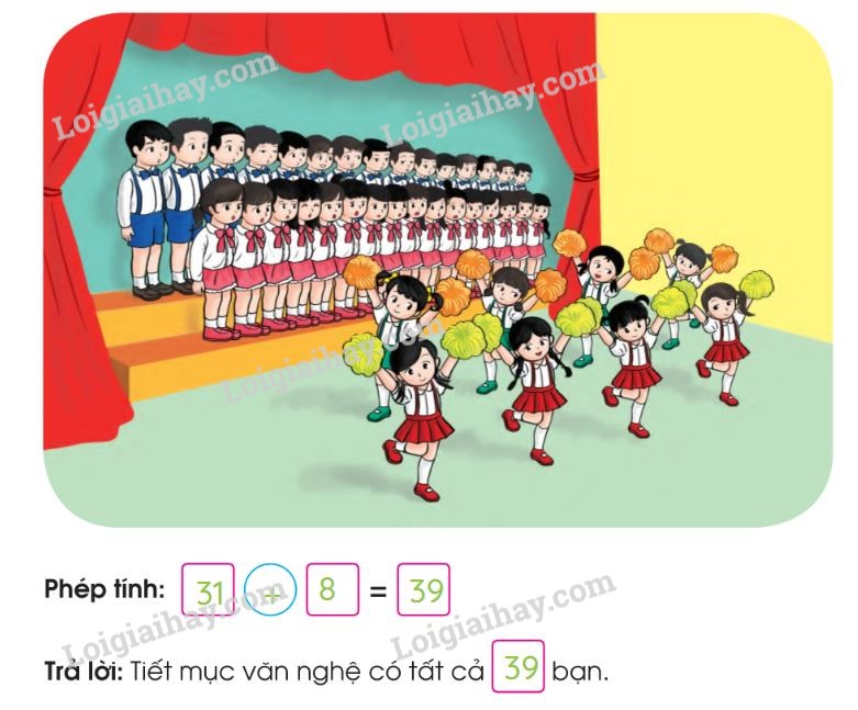 Tiết mục văn nghệ có 31 bạn hát và 8 bạn múa. Hỏi tiết mục văn nghệ đó có tất cả bao nhiêu bạn?