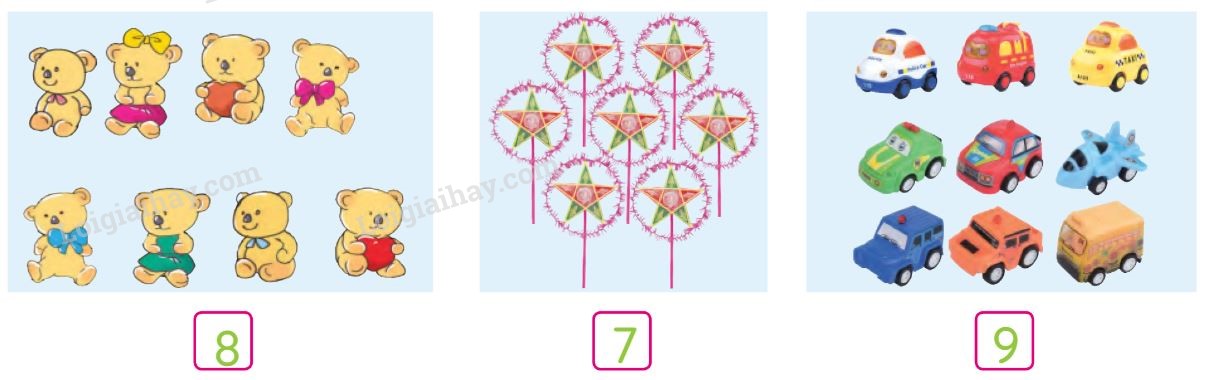 Quan sát ví dụ mẫu rồi lấy số hình phù hợp với các con số.