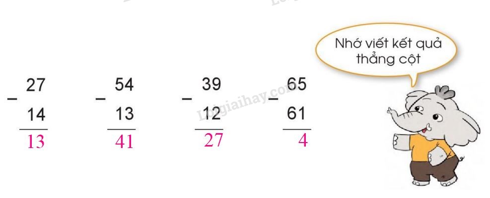 - Tính: Trừ các chữ số lần lượt từ phải sang trái.