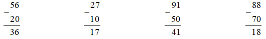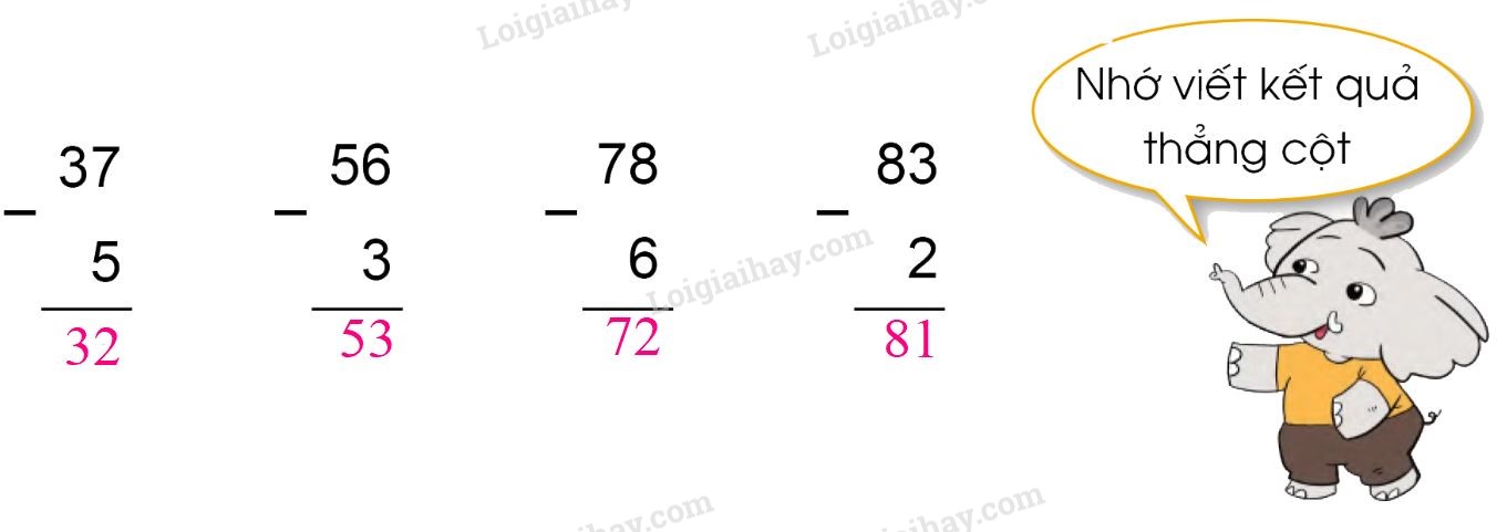 Tính: Trừ các chữ số lần lượt từ phải sang trái.