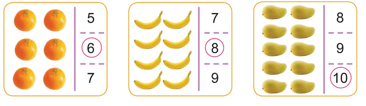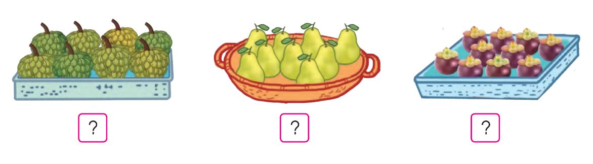 b) Quan sát hình, đếm số quả và chọn số thích hợp.