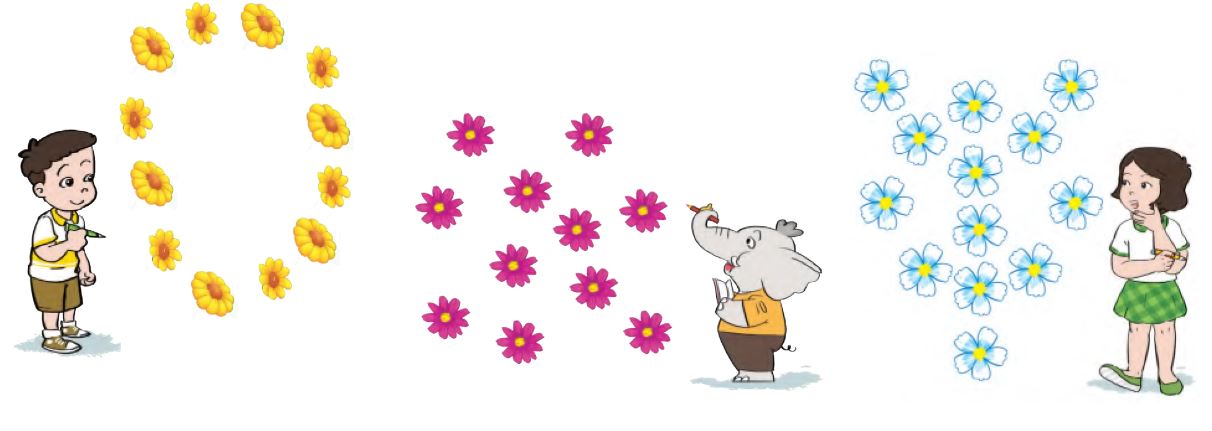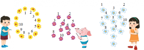 Đếm và chỉ ra 10 bông hoa mỗi loại: