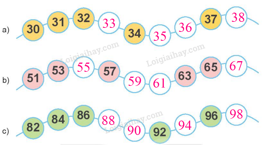 Điền các số thích hợp để được dãy các số tăng dần 1 đơn vị, 2 đơn vị.