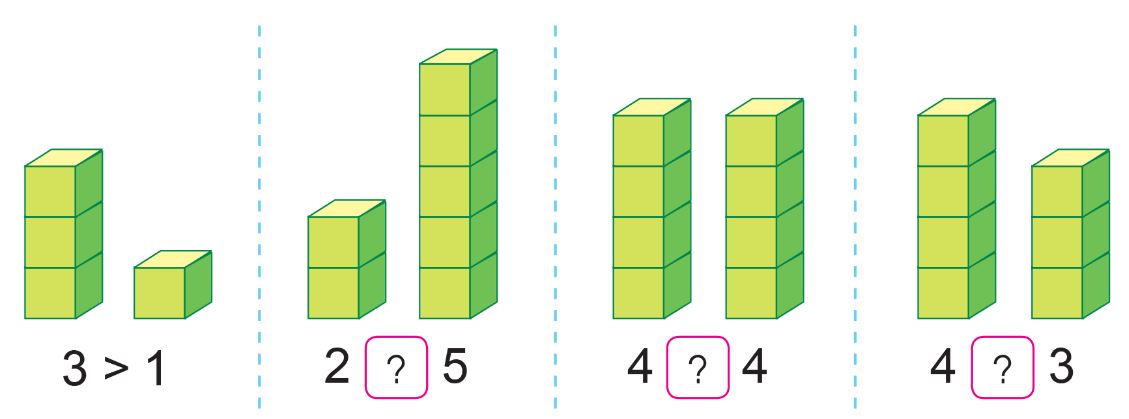 Vật nào ghi số lớn hơn trong mỗi hình vẽ sau?