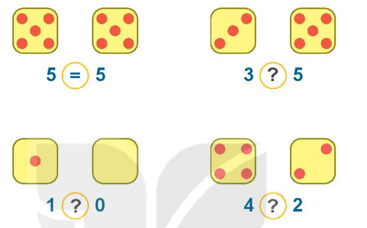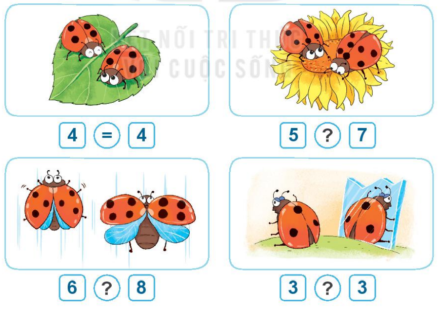 Quan sát mỗi hình vẽ và chọn số phù hợp để được phép so sánh đúng.