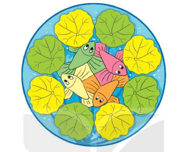Trong bức tranh có 4 chiếc lá màu vàng và 4 chiếc lá màu xanh.