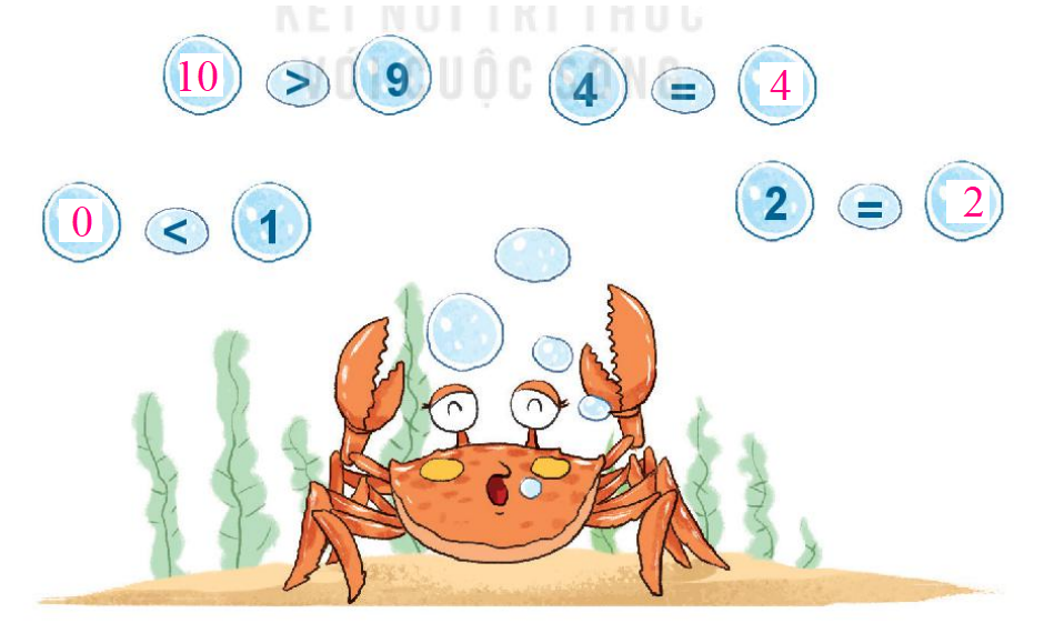 Điền số thích hợp điền vào bong bóng để được các phép so sánh đúng.