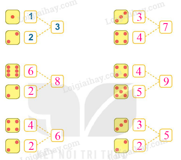Đếm số chấm tròn ở mỗi thẻ rồi viết số tương ứng vào ô trống.