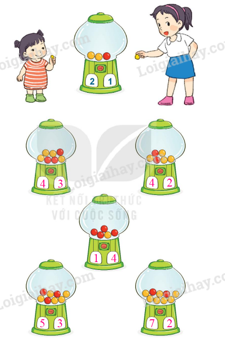 Quan sát hình vẽ và đếm số bi vàng, bi đỏ có trong mỗi hộp rồi điền số thích hợp vào ô trống.