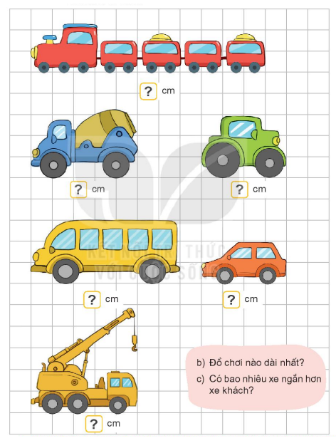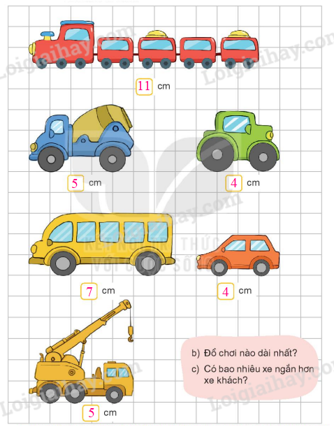 a) Nêu độ dài của mỗi đồ chơi.