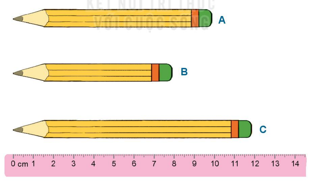 Bút chì dài hơn 8cm là bút chì A và bút chì C.