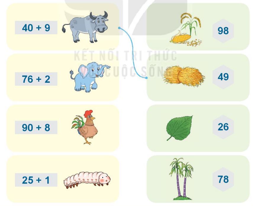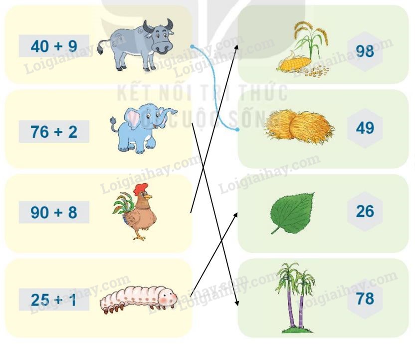 Tính rồi tìm thức ăn cho mỗi con vật: