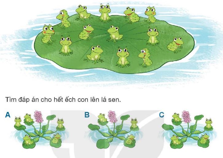 Lá sen chỉ chở được 17 chú ếch con. Trên lá sen đang có 14 chú ếch con.