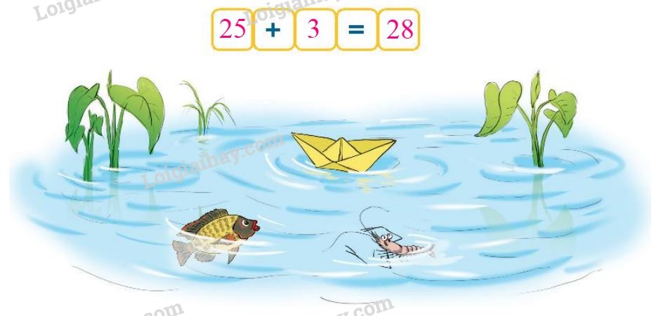 Bạn Mai gấp được 25 chiếc thuyền giấy. Em Mi gấp được 3 chiếc thuyền giấy. Hỏi cả hai chị em gấp được bao nhiêu chiếc thuyền giấy?