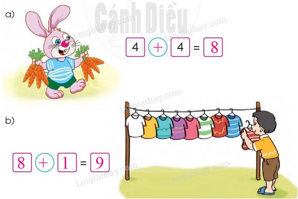 Nêu các phép tính thích hợp với mỗi tranh vẽ: