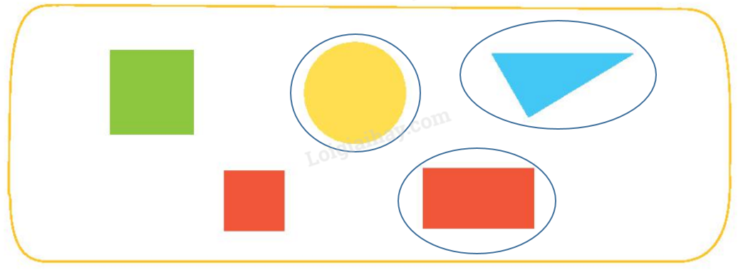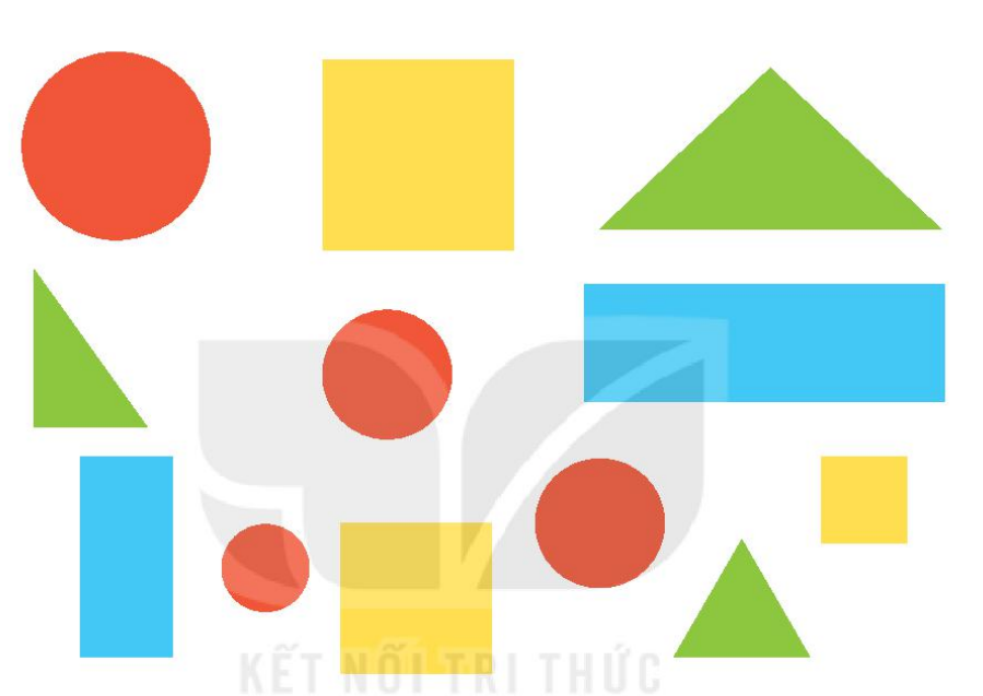 Đếm số hình tròn, hình vuông, hình tam giác, hình chữ nhật trong hình vẽ.