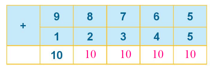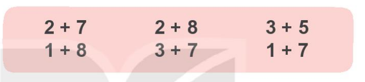 3 + 6 = 9 5 + 5 = 10 1 + 9 = 10