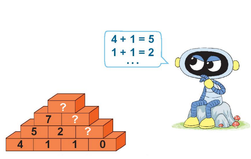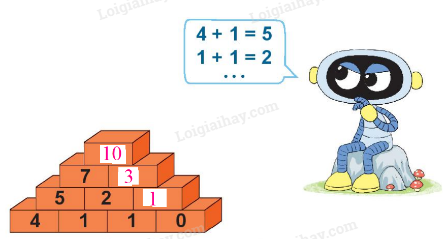 Tính kết quả phép cộng hai số ghi ở viên gạch bên dưới để tìm số ghi ở viên gạch bên trên.