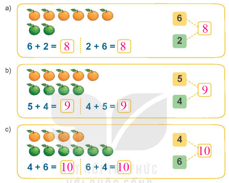 Nhẩm: 2 + 3 = 5; 5 + 5 = 10