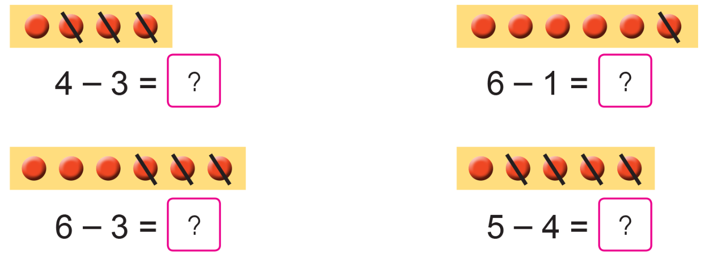 Quan sát hình vẽ, điền số thích hợp để được phép trừ đúng.
