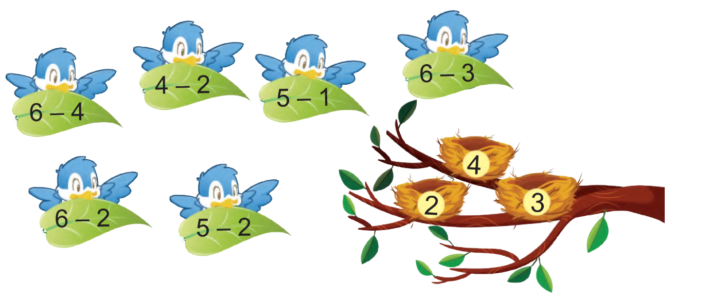 Nêu phép trừ thích hợp với mỗi tranh vẽ: