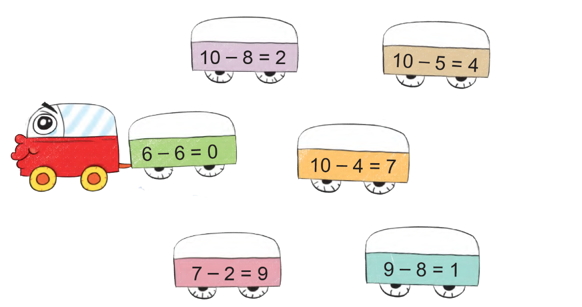 c) Mẹ có 6 quả trứng, mẹ dùng 4 quả trứng để chiên, còn lại 2 quả trứng. Ta có phép tính 6 - 4 = 2