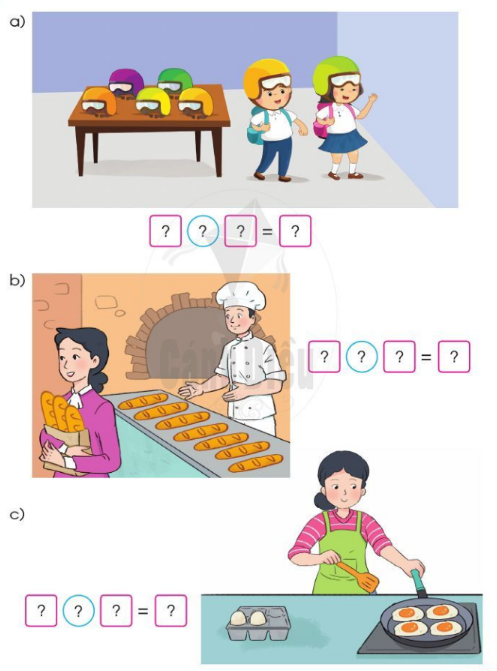 Quan sát tranh, rồi nêu các phép tính thích hợp.