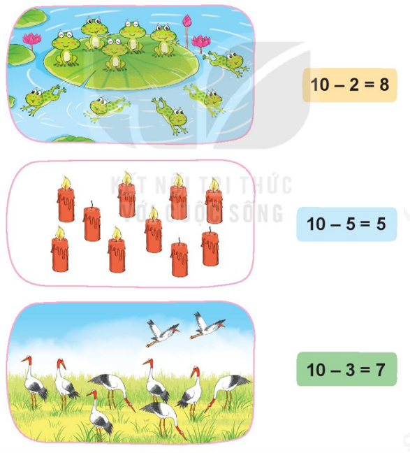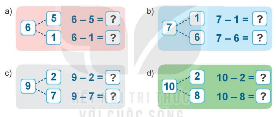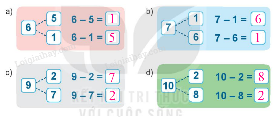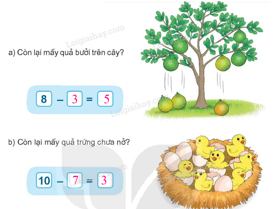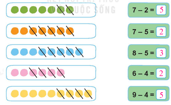Quan sát hình vẽ và viết kết quả thích hợp cho mỗi phép tính.