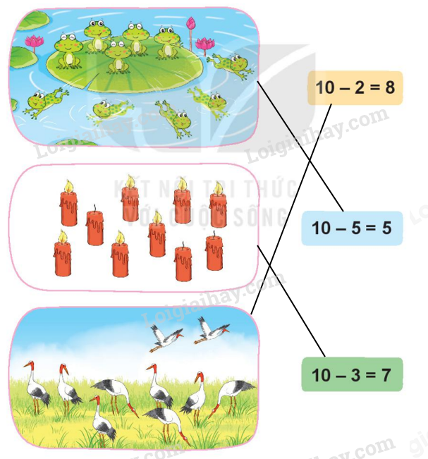 Quan sát hình ảnh rồi nối phép tính thích hợp.