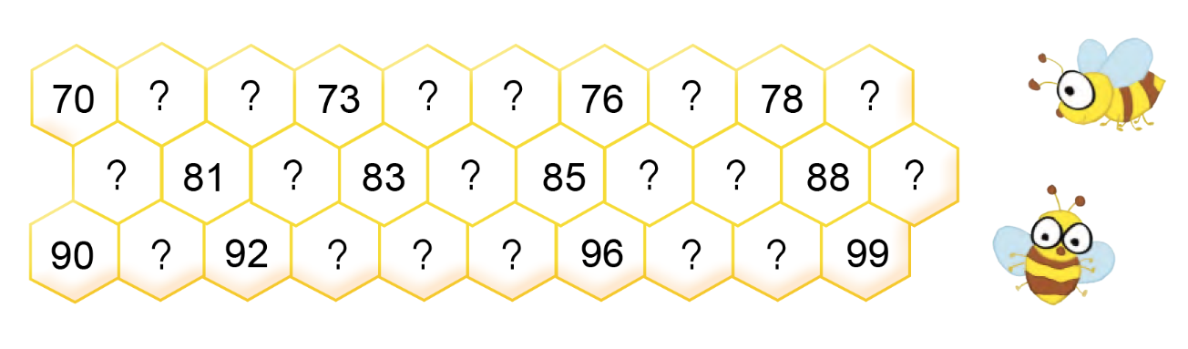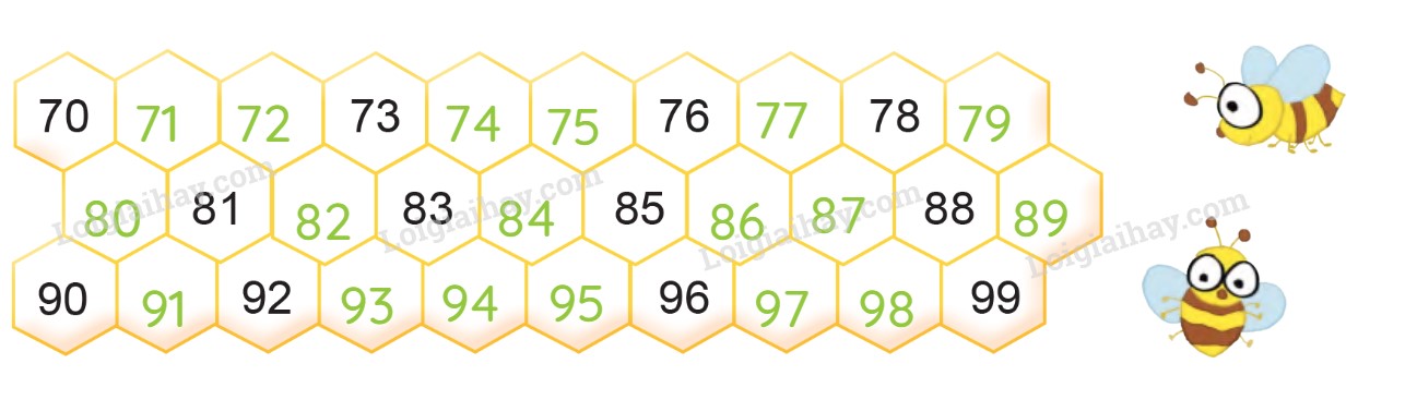 Đếm từ 71 đến 99 sau đó điền vào ô trống những số còn thiếu và đọc các số đó lên.