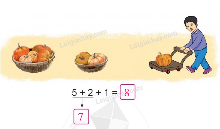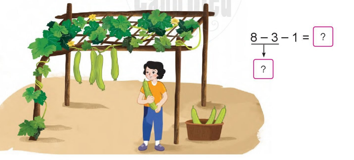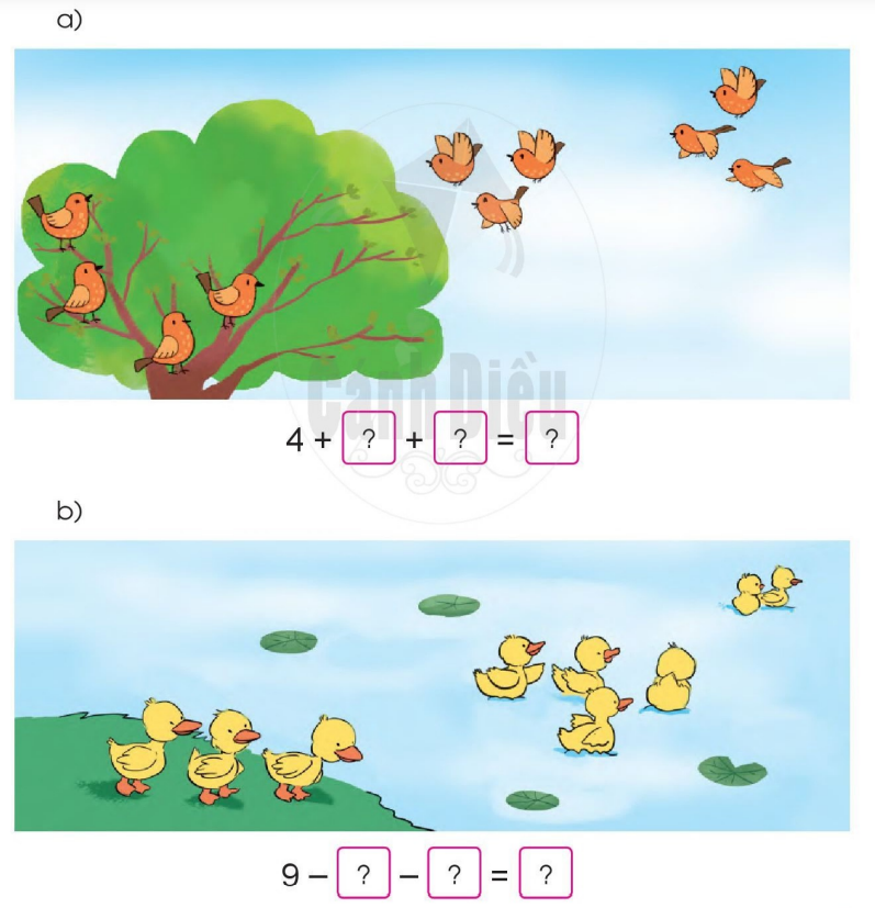 Quan sát tranh điền số thích hợp để hoàn thành phép tính.