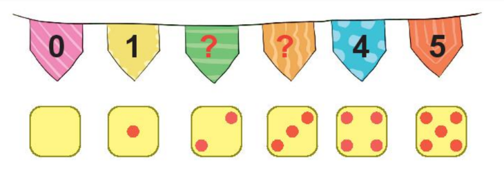 Điền các số còn thiếu theo thứ tự 1, 2, 3, 4 và 5 và ngược lại.