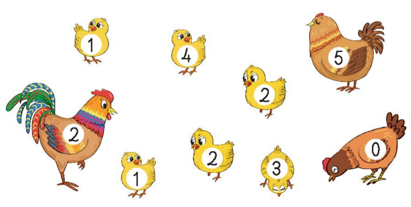 Đếm số con gà được ghi số 2.