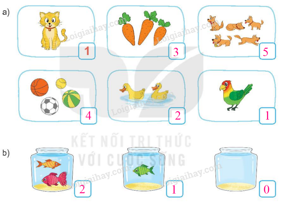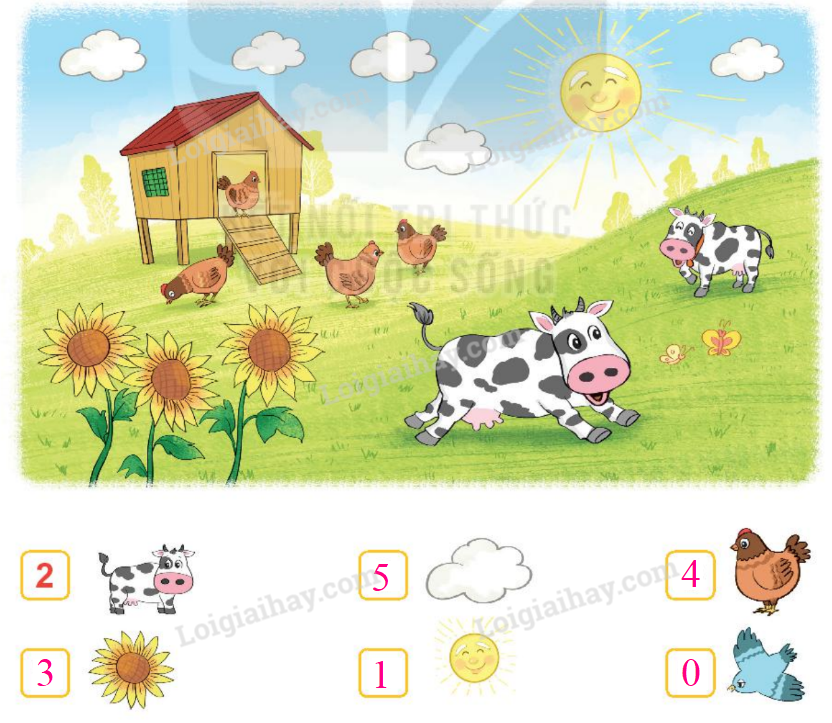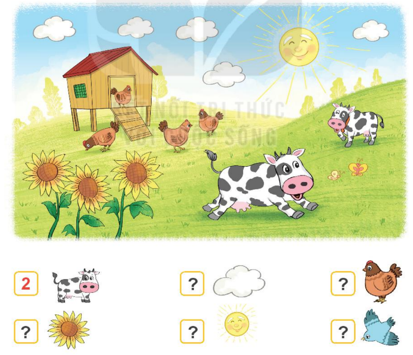 Quan sát tranh, đếm số vật trong tranh rồi điền số tương ứng vào ô trống.
