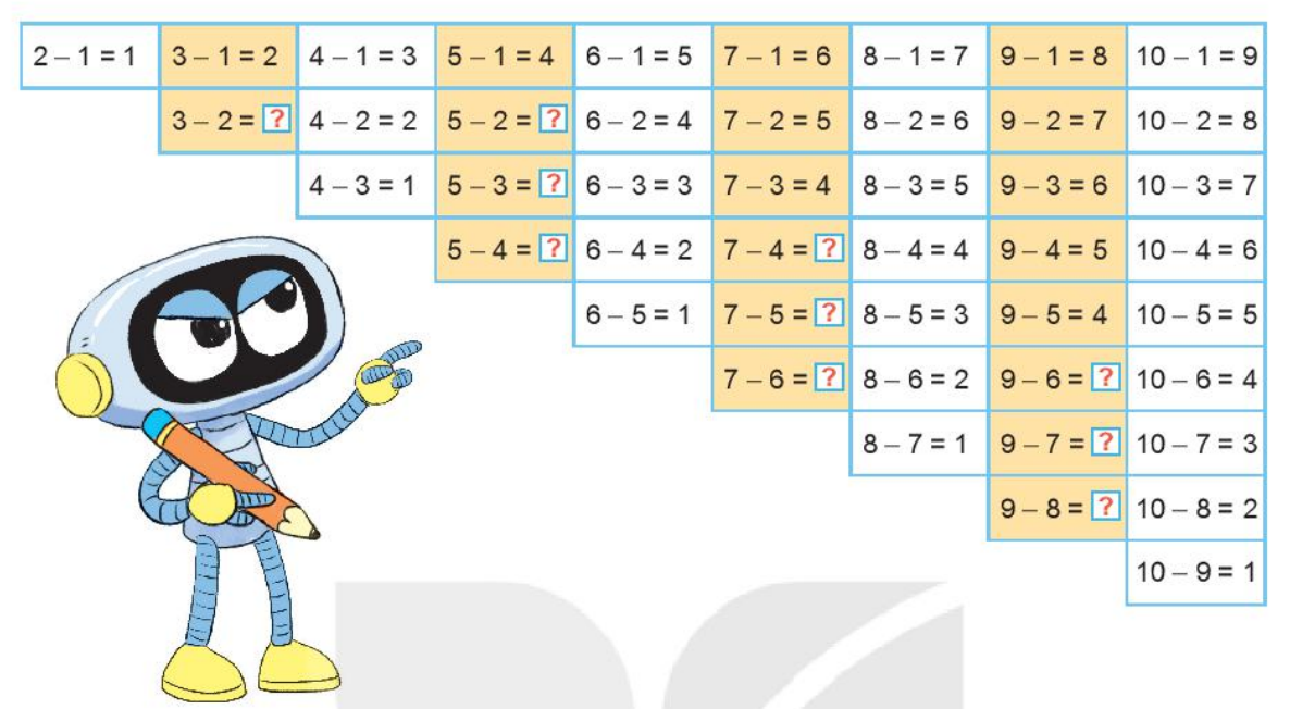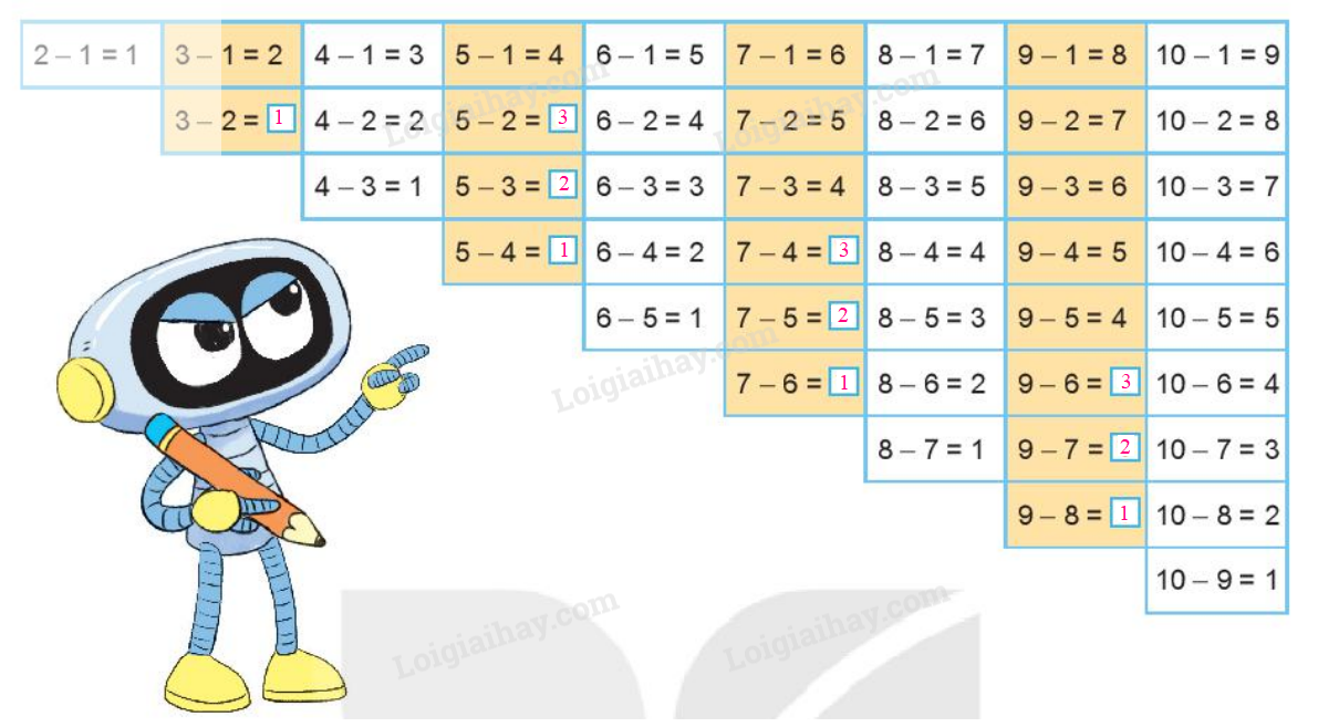 Tính kết quả các phép trừ rồi điền số thích hợp vào ô trống.