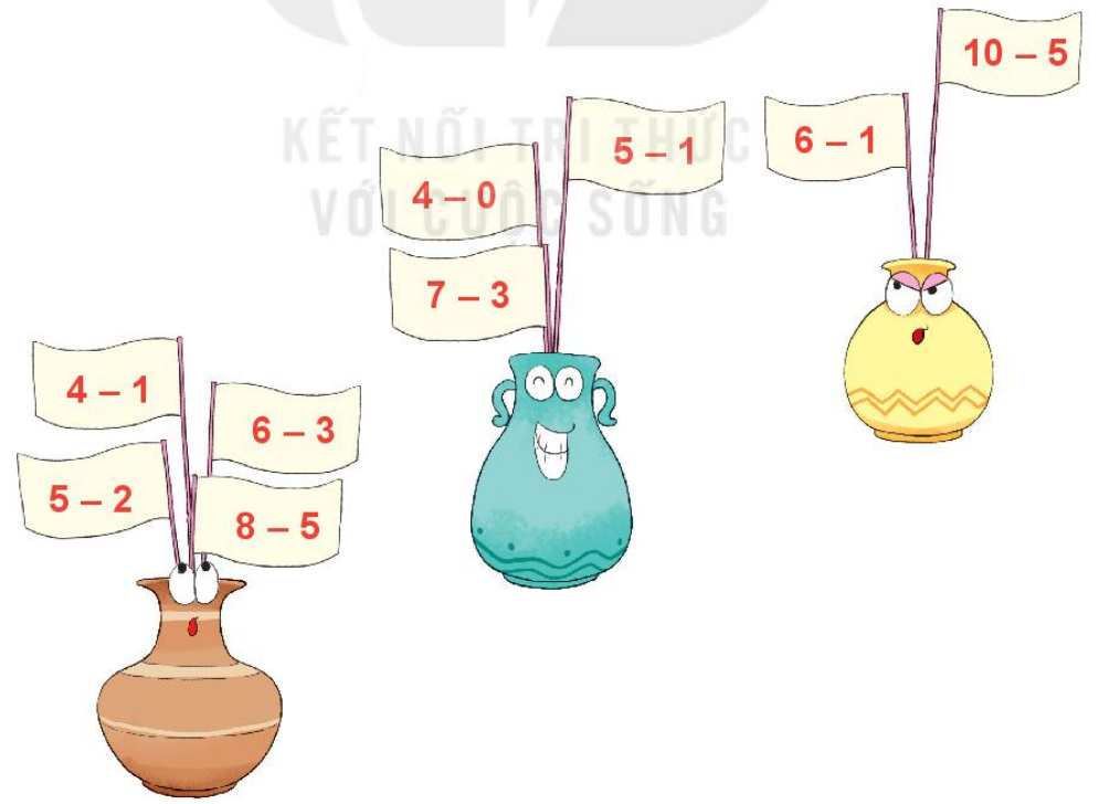 Tính nhẩm kết quả mỗi phép trừ có trên lá cờ.