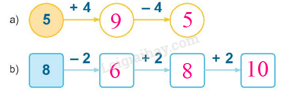 Tính nhẩm kết quả các phép tính theo chiều mũi tên rồi viết số thích hợp vào ô trống.