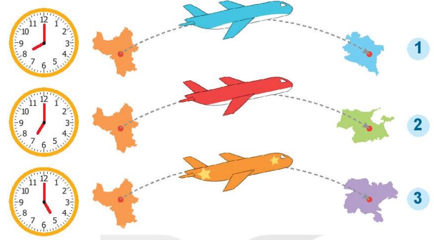 b) Máy bay từ Hà Nội – Đà Nẵng xuất phát lúc 7 giờ nên em lên máy bay số 2.