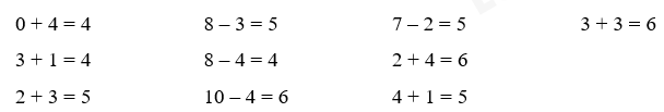 4 + 0 = 4 6 – 2 = 4 2 + 4 = 6