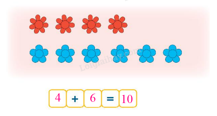 Vậy ta có phép cộng: 4 + 6 = 10.