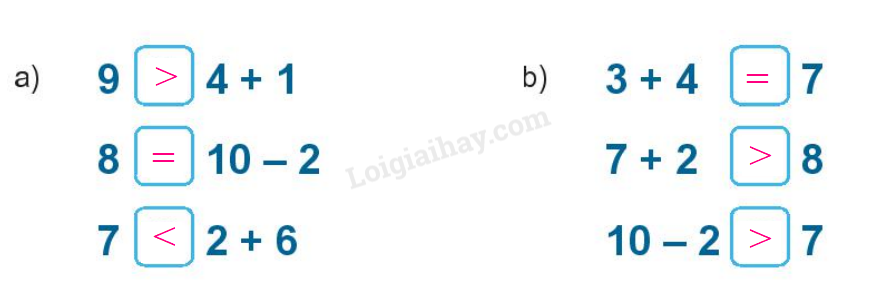 Tính nhẩm kết quả của các phép tính rồi so sánh hai vế.