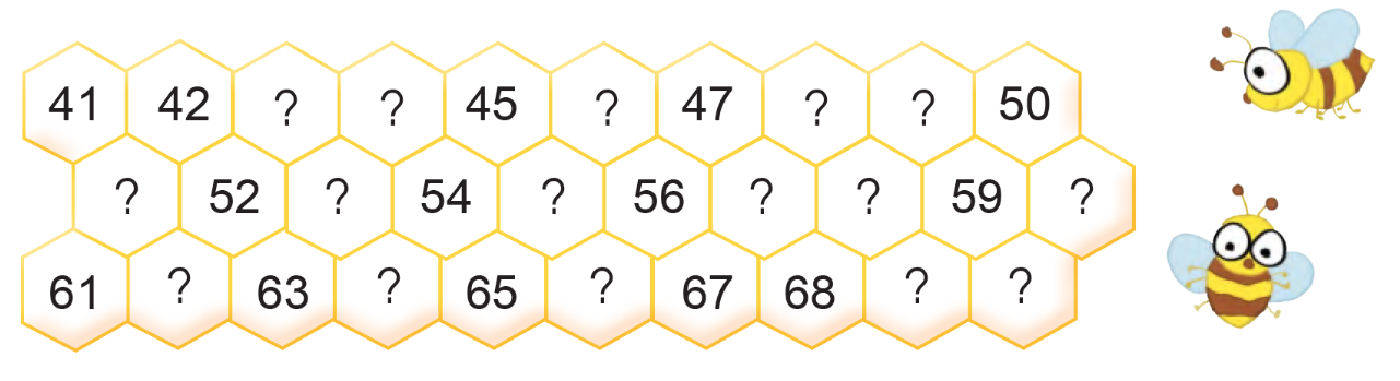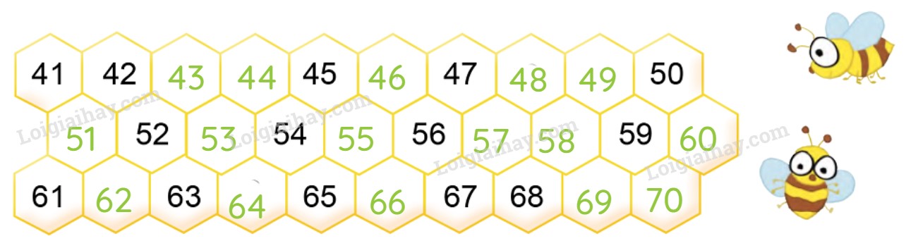 Đếm từ 41 đến 70 sau đó điền vào ô trống những số còn thiếu và đọc các số đó lên.