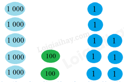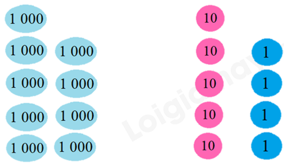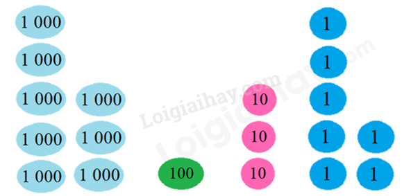Dùng các thẻ 1 000; 100; 10; 1 thể hiện số.