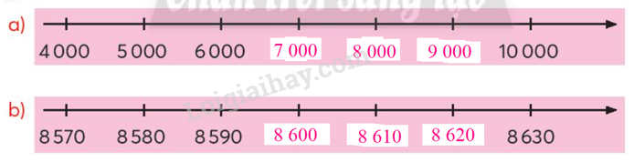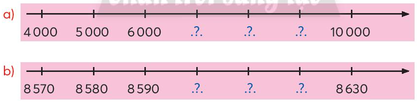 Đếm thêm 1 000 hoặc 10 đơn vị rồi viết tiếp các số còn thiếu vào chỗ trống.