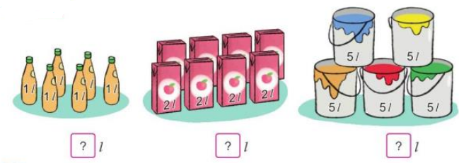 - Làm tương tự để tìm số lít ở các hình còn lại.